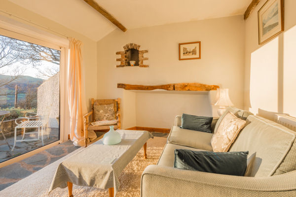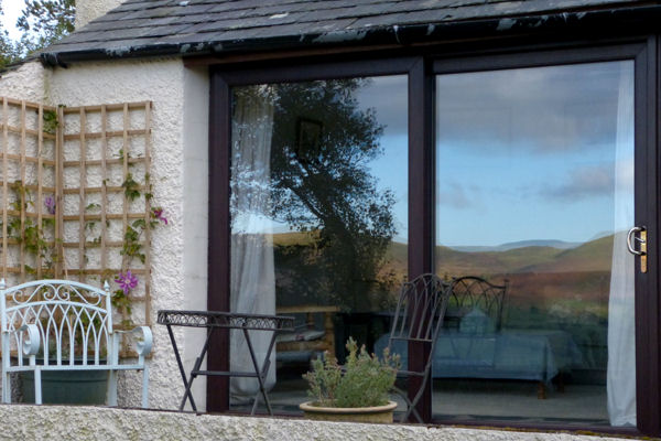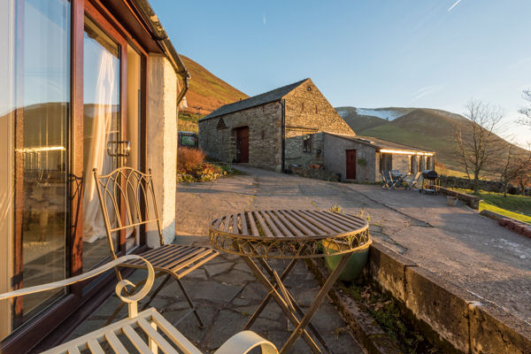 Little Swinside Cottage was converted from the original hayloft and has lovely oak beams. Most of the accommodation is upstairs - the double bedroom, sitting/dining room with a log burner, kitchen, and bathroom. Downstairs a patio room has exceptional views down the Lorton valley and French windows that lead onto a small terrace with table and chairs. The patio room also has a sofa bed that can be used for children or another adult (for a small extra cost). For large groups Little Swinside can be let with the Farmhouse next door; the two are connected via a lockable door. See below for photos, more detail, and availability.