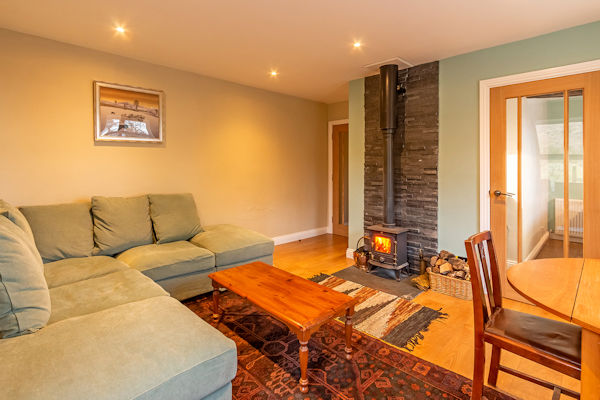 The sitting room has a log burner for those autumn, winter, and spring evenings - or anytime you want a little more warmth! To the right of the log burner is the door to the kitchen.