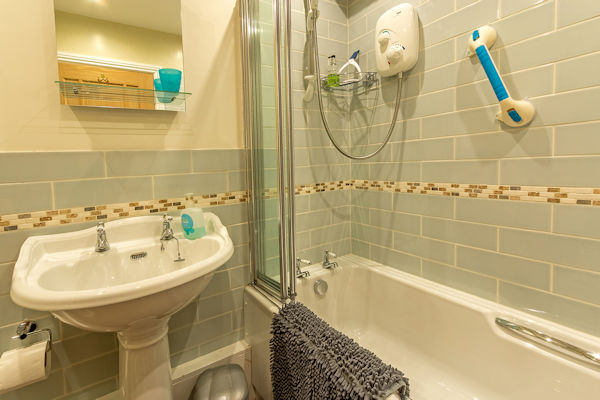 The bathroom next to the bedroom has been newly upgraded. It has a shower over the bath.