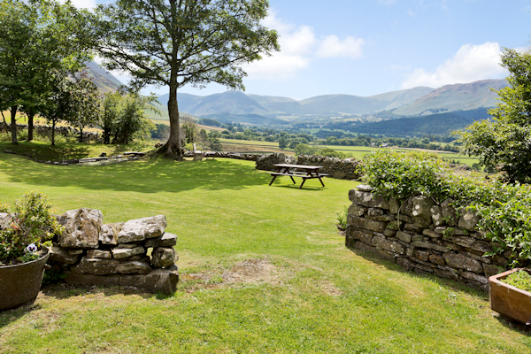 The garden is shared with the Farmhouse and High Swinside Cottage. It has a picnic table and benches for enjoying the view, hammocks under the trees, a pond with tadpoles, a tree house and camp fire circle, and gated access onto the open fells with wonderful walks right on your doorstep.