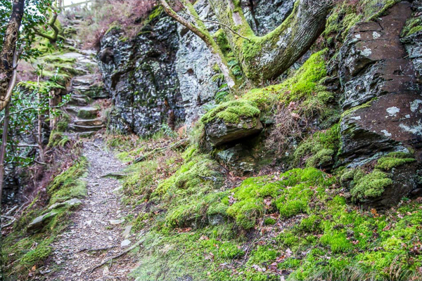Your way is now a zig zag up the hill, turning left at the first junction, then left again, then right - always upwards. The way is quite steep for a short while with stone steps.