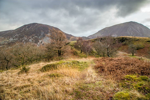 Continue along this path, contouring along the valley side with Low Fell off to your right across the valley and views of Melbreak ahead of you as you round the Dodd. This path takes you right down the valley to Liza Beck.
