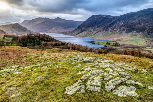 This walk heads south from High Swinside along the valley side with views to Melbreak ahead and Low Fell across the valley. It includes a lovely section along the shore of Crummock Water before returning through Lanthwaite Woods and up onto Lanthwaite Hill (marked Scale Hill on some maps). The views from this low summit are some of the best in the western lakes. The final leg is mainly on quiet lanes winding through the Lorton valley back to High Swinside.