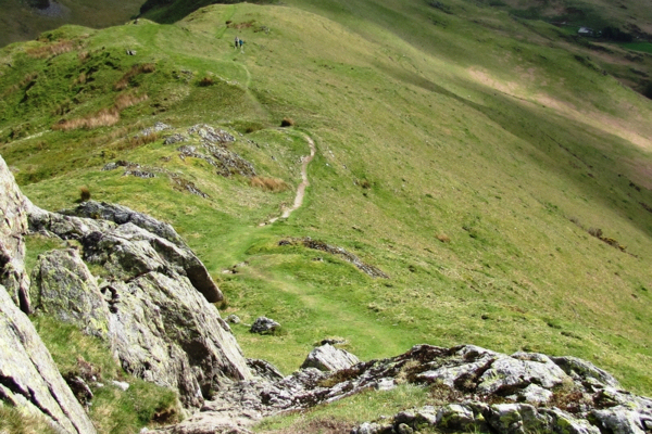 From the summit you take the path that heads south east and after an initial descent it is mostly on the level along the ridge called Low Bank.