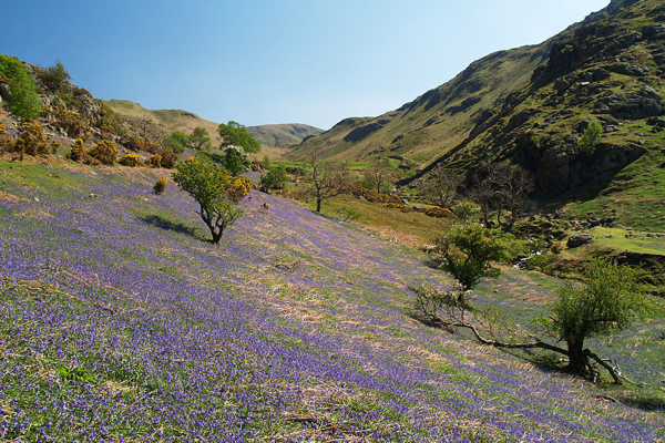 Turning around to look up Rannerdale to the saddle above the bluebells, with Robinson just peeping into view above the curve of the saddle.